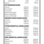 Whey protein concentrate, whey protein isolate, fat-burning blend (cla powder, garcinia cambogia extract, green coffee bean extract, coconut oil powder), taurine, inulin, natural flavour, l-carnatine, stabiliser (xanthan gum), natural sweetener (thaumatin).