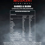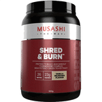 Musashi Shred and Burn is scientifically formulated using whey protein concentrate and whey protein isolate in an advanced muscle shredding complex. This lean muscle formula is enhanced with key Shred and Burn ingredients: Carnitine and Green Tea extract to support your goals in a delicious formula that tastes great and mixes with ease.