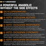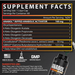 ANABOL RIPPED is a dietary supplement designed for fat loss and muscle building. It contains a blend of ingredients including Cocoabuterol and GBBGO, which aid in fat metabolism and increased energy production. The inclusion of various forms of 6-Keto-Diosgenin and Dicyclopentanone is intended to support muscle growth and recovery.