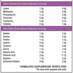 Full Amino Acid profile- added BCAAs at 2:1:1 ratio (L- Leucine, L- Isoleucine, L- Valine). Contains a full complement of muscle feeding amino acids including glutamine