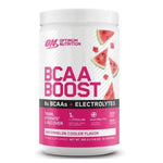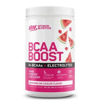 Support your training and recovery with BCAA Boost, the new refreshing BCAA + electrolyte drink from Optimum Nutrition. With a scientifically backed 2:1:1 ratio of essential amino acids (Leucine, Isoleucine, and Valine), this drink provides the same ratio found in skeletal muscle and a glass of milk. BCAA's can aid in muscle recovery and energy for prolonged exercise, making it a unique source of dietary support. This zero caffeine and zero carb formula includes 8g of BCAA (in a 2:1:1 ratio), 1200mg of electrolytes, and 1g of L-Citrulline per scoop. Simply mix 1 scoop (13g) into 300-400mL of cold water or your favorite beverage and enjoy as an intra-workout and post-workout drink. Take it day or night without affecting your sleep patterns and supplement your diet without any extra carbs or sugar. Fuel your muscles and meet