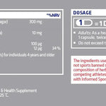 Apple cider vinegar: 300 mg per capsule, balances the body’s pH–less acidic, reduces cravings, improves detoxification of the body.