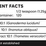 - 100% natural mushroom extracts: Reishi, Chaga, and Turkey Tail